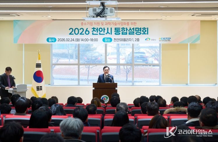 코리아타임뉴스 김택호 기자 | 천안시는 24일 천안과학산업진흥원과 천안SB플라자에서 ‘중소기업 지원 및 과학기술사업화를 위한 2026 천안시 통합설명회’를 개최했다고 밝혔다.