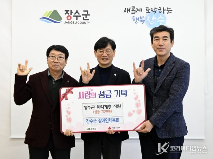 코리아타임뉴스 김태훈 기자 | 장수군 장애인체육회는 25일 지역 내 어려운 이웃을 돕기 위해 성금 70만원을 기탁하며 지역사회에 따뜻한 나눔을 실천했다.