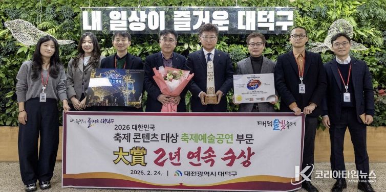구는 이번 성과를 바탕으로 오는 4월 4~5일 이틀간 대청공원 일원에서 ‘2026 대덕물빛축제’ 메인 행사를 개최한다. 3년 연속 수상의 품격에 걸맞은 한층 강화된 프로그램을 선보일 예정이다.