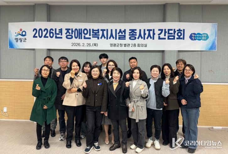 코리아타임뉴스 노승선 기자 | 영광군은 지난 2월 26일 영광군청 별관 회의실에서 관내 장애인복지시설 종사자들과 간담회를 개최하고, 2026년 장애인복지시설 운영과 관련한 주요 사항을 공유하며 현장 소통의 시간을 가졌다.