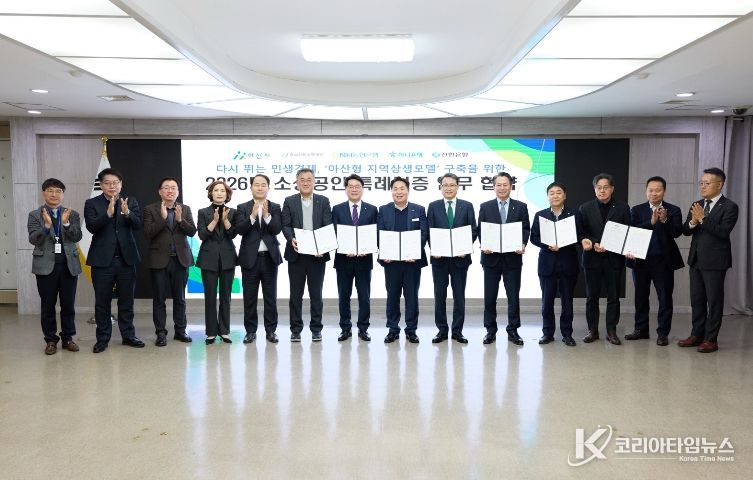 코리아타임뉴스 김택호 기자 | 아산시는 27일 소상공인 금융지원을 강화하기 위해 충남신용보증재단 및 지역 금융기관인 NH농협은행, 하나은행, 신한은행과 ‘2026년 소상공인 특례보증 공동출연 업무협약’을 체결했다.