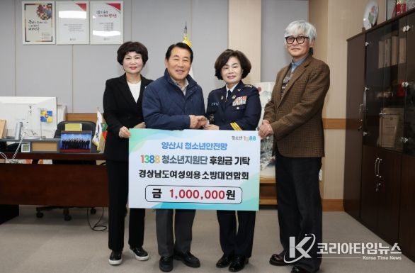 코리아타임뉴스 오영주 기자 | 경상남도 여성의용소방대연합회(회장 김복야)는 27일 양산시를 방문해 후원금 100만원을 양산시청소년상담복지센터 1388청소년지원단에 기탁했다.