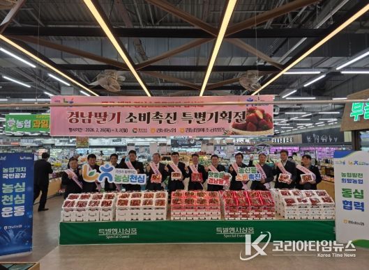 코리아타임뉴스 오영주 기자 | 경상남도는 2월 26일부터 3월 2일까지 5일간 김해농수산물종합유통센터에서 ‘경남 딸기 소비촉진 특별기획전’을 진행하고 있다.
