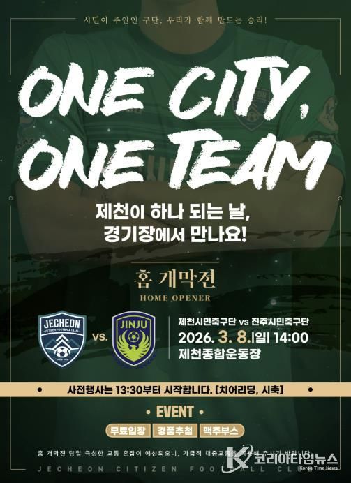 코리아타임뉴스 충북취재본부 | 제천시민축구단이 오는 3월 8일 오후 2시, 제천종합운동장에서 역사적인 홈 개막전을 연다.