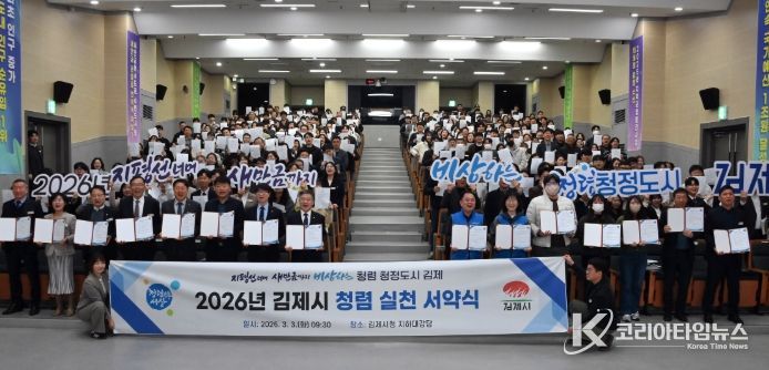코리아타임뉴스 전북취재본부 | 김제시는 3일 시청 대강당에서 전 직원을 대상으로 ‘2026년 청렴 실천 서약 및 결의대회’를 진행했다고 밝혔다.