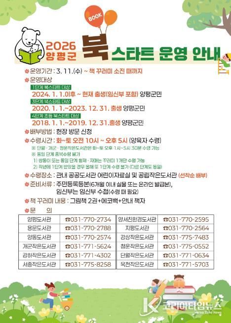 코리아타임뉴스 기동취재팀 | 양평군은 오는 11일부터 ‘2026년 북스타트 사업’을 본격 운영한다고 밝혔다.