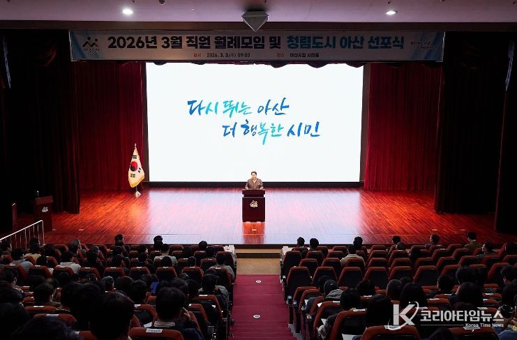 코리아타임뉴스 김택호 기자 | 오세현 아산시장은 3일 시민홀에서 열린 ‘3월 직원 월례모임’에서 “행정 혁신은 성과에 안주하지 말고, 시민이 체감하는 변화로 완성해야 한다”고 강조했다.