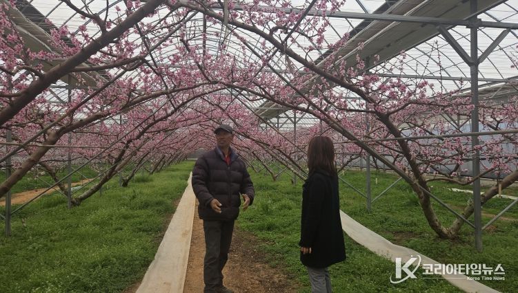 코리아타임뉴스 전북취재본부 | 매서운 겨울을 이겨낸 김제 시설복숭아가 붉은 꽃망울을 활짝 터뜨리며 봄을 재촉하고 있다.