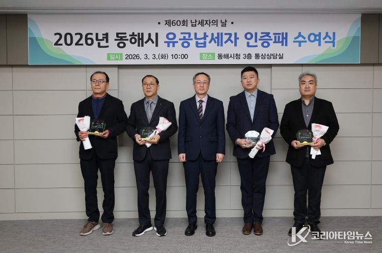 코리아타임뉴스 이아름 기자 | 동해시는 3월 3일 '제60회 납세자의 날'을 맞아 시청 통상상담실에서 유공납세자 인증패 수여식을 열고 성실납세자들에게 감사의 뜻을 전했다.