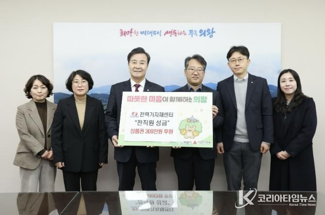 코리아타임뉴스 윤광희 기자 | 한국전력공사 전력기자재센터가 3월 3일, 의왕시 저소득층을 위해 온누리상품권 300만원을 기부했다.