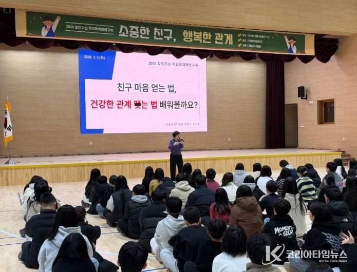 최한용 교육장은 “중학교 1학년은 또래 문화가 형성되는 중요한 시기인 만큼 초기 예방교육이 무엇보다 중요하다”며 “앞으로도 학교 현장을 직접 찾아가는 예방 중심 교육을 지속적으로 확대하여 안전하고 따뜻한 학교문화 조성에 힘쓰겠다”고 밝혔다.