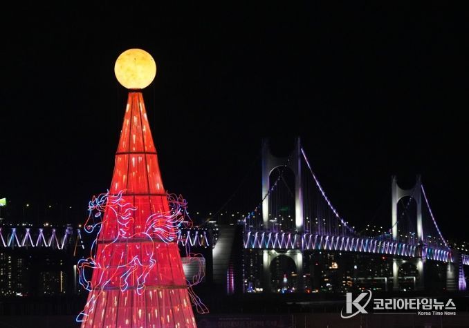 행사에서는 정월대보름을 상징하는 LED 달집 점등식이 진행됐다. 올해 LED 달집은 병오년 ‘붉은 말의 해’를 반영해 파도와 오륙도, 말을 형상화한 디자인으로 제작됐다.