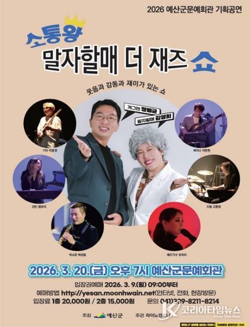 코리아타임뉴스 김택호 기자 | 예산군은 오는 3월 20일 저녁 7시 문예회관 공연장에서 ‘소통왕 말자할매 더 재즈 쇼’ 토크 콘서트를 개최한다고 밝혔다.