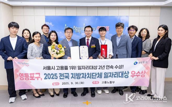 코리아타임뉴스 윤광희 기자 | 영등포구가 국가데이터처가 발표한 ‘2025년 하반기 지역별 고용조사’에서 전체 고용률과 여성 고용률 모두 서울시 1위를 기록하며 3년 연속 서울시 정상의 자리를 지켰다.
