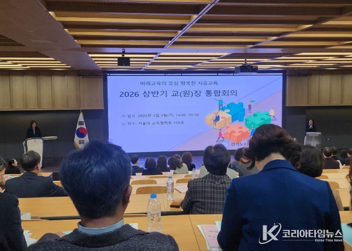 코리아타임뉴스 사회팀 | 경기도시흥교육지원청은 3월 5일 서울대 시흥캠퍼스 교육협력동에서 ‘미래교육의 중심 행복한 시흥교육’ 실현을 위한 공감과 소통의 2026 초중고 학교장 및 유치원 원장 통합 회의를 개최했다.