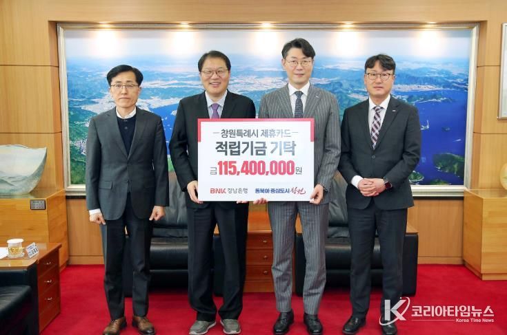 코리아타임뉴스 오영주 기자 | 창원특례시는 3월 5일 시청 접견실에서 BNK경남은행 관계자들이 참석한 가운데 제휴카드 적립기금 전달식을 개최했다.