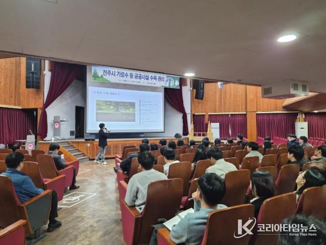코리아타임뉴스 김태훈 기자 | 전주시는 5일 시청 강당에서 소속 부서 및 산하·출연기관 관계자 150여 명을 대상으로 ‘가로수 등 공공시설 수목 관리 교육’을 실시했다.