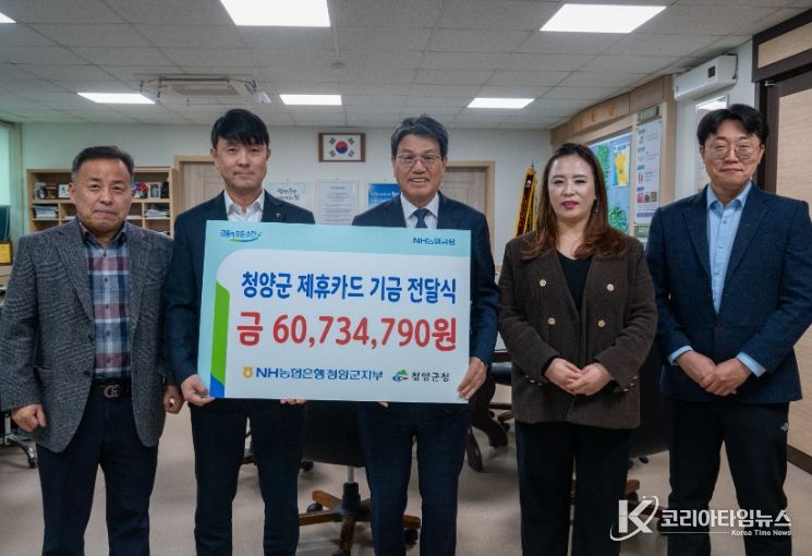 코리아타임뉴스 김택호 기자 | 청양군은 NH농협은행 청양군지부(지부장 이동수)로부터 지난해 제휴카드 사용으로 발생한 적립 기금 6,073만 원을 전달받았다고 6일 밝혔다.