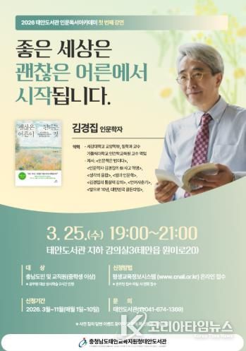 ![[충청남도태안교육지원청태안도서관] 태안도서관 '인문독서 아카데미' 운영](/data/photos/portnews/202603/20260306094618-10526.jpg)