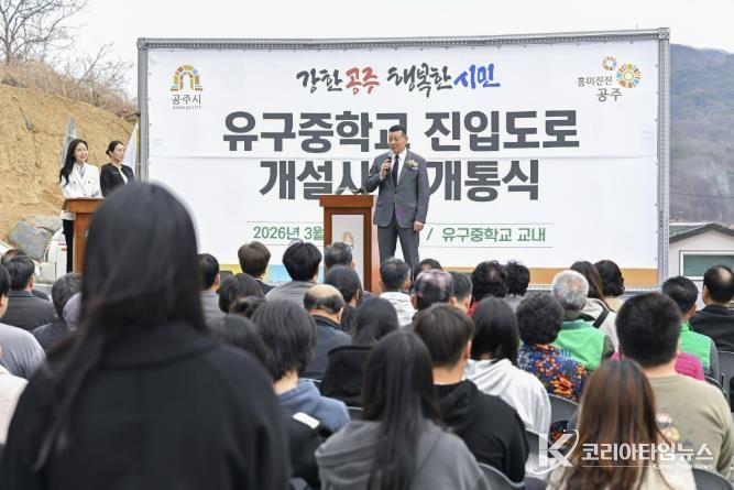 코리아타임뉴스 충남취재본부 | 공주시는 유구중학교 학생과 지역 주민의 안전한 보행 환경을 조성하고 원활한 차량 통행을 위해 추진한 유구중학교 진입도로 개설사업을 마무리하고 개통식을 개최했다고 밝혔다.