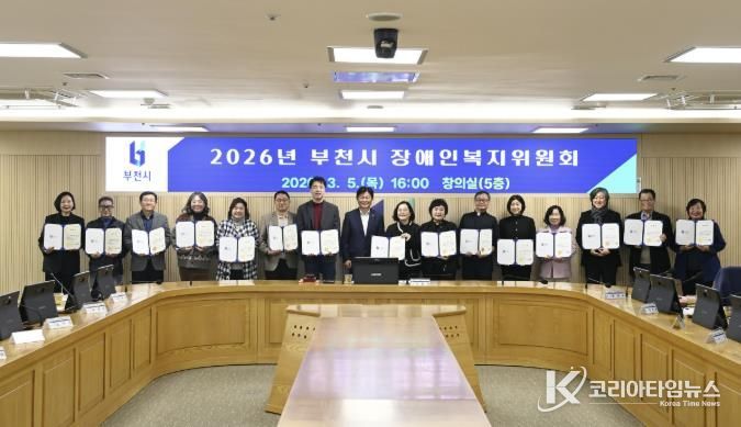 코리아타임뉴스 경기취재본부 | 부천시는 지난 5일 시청 창의실에서 ‘2026년 제1차 부천시 장애인복지위원회’를 열고, 장애인과 가족이 체감할 수 있는 실질적 복지정책 추진을 위한 소통의 시간을 가졌다.
