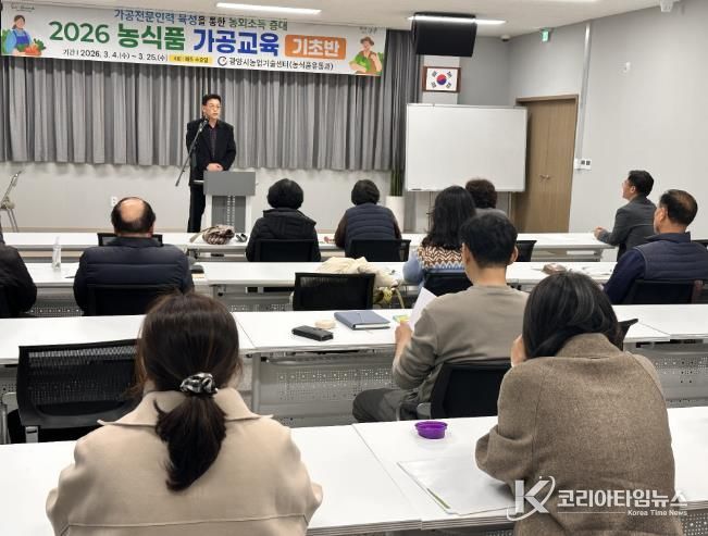 코리아타임뉴스 전남취재본부 | 광양시는 지역 농업인의 농산물 가공 역량을 높이고 농식품 가공 창업 기반을 강화하기 위해 '2026년 농식품 가공교육 기초반'을 개강하고 본격적인 교육 운영에 들어갔다고 밝혔다.