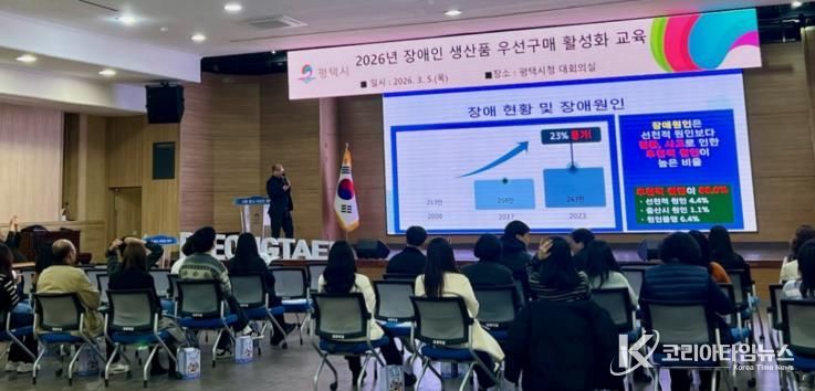 코리아타임뉴스 사회팀 | 평택시는 지난 5일 시청 본관 2층 대회의실에서 평택시 공무원을 대상으로 '2026년 장애인생산품 우선구매 활성화 교육’을 실시했다.