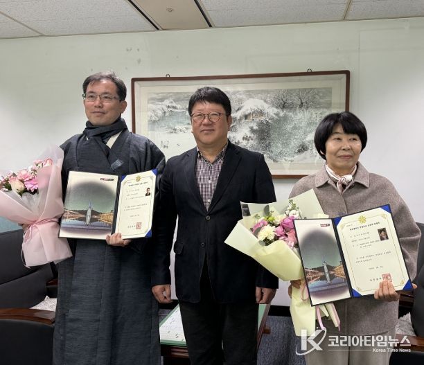코리아타임뉴스 대전취재본부 | 대전시는 3월 3일 자로 시 무형유산 ‘초고장’과 ‘국화주’ 보유자로 양인화 초고장과 송영진 주조장을 각각 인정·고시하고, 신규 보유자에게 보유자 증서를 수여했다.