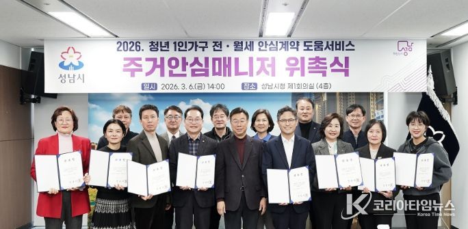 코리아타임뉴스 경기취재본부 | 성남시는 전월세 계약 경험이 부족한 1인 가구 청년층을 돕기 위해 현직 공인중개사 15명을 ‘주거 안심 매니저’로 위촉했다고 6일 밝혔다.