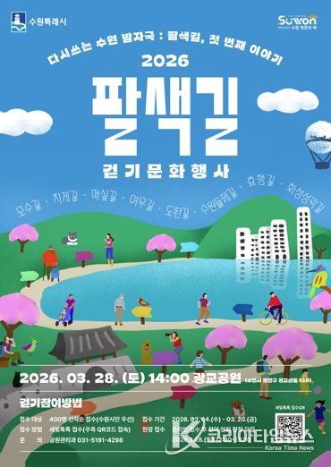 코리아타임뉴스 사회팀 | 수원특례시가 ‘2026 팔색길 걷기 문화행사’에 참여할 시민 400명을 3월 20일까지 선착순으로 모집한다.