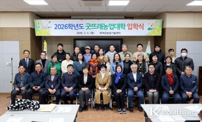 코리아타임뉴스 충남취재본부 | 부여군은 농업기술센터 굿뜨래홍보교육관에서 미래농업을 이끌 정예 양성을 위한 ‘2026학년도 굿뜨래농업대학’ 입학식을 개최했다고 9일 밝혔다.