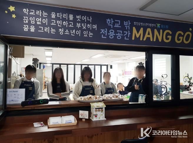 코리아타임뉴스 오영주 기자 | 함안군은 지난 6일 함안군학교밖청소년지원센터가 함안군 청소년수련관 3층 학교 밖 직업체험장에서 일일 카페 ‘카페 망고(cafe MANG-GO)’의 운영을 시작했다고 밝혔다.