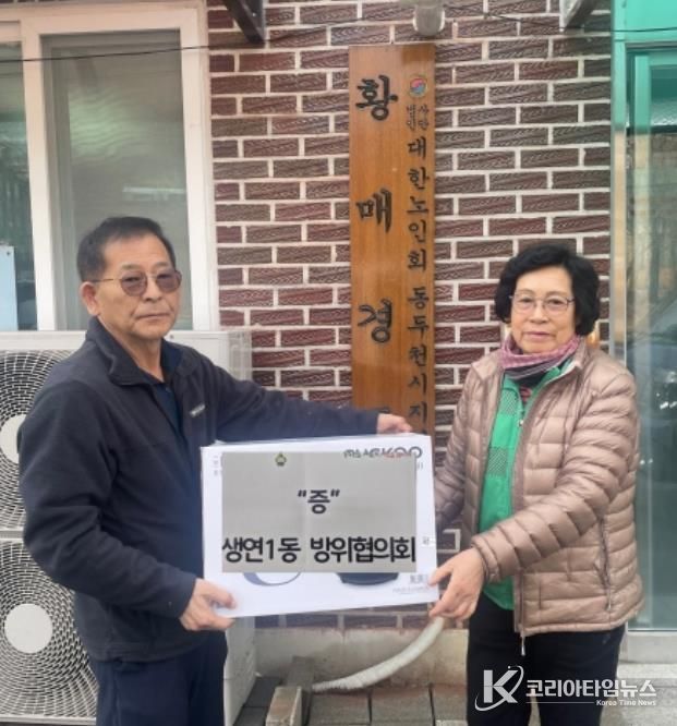 코리아타임뉴스 경기취재본부 | 동두천시 생연1동 방위협의회는 지난 6일 자매결연을 맺고 있는 황매 경로당을 방문해 어르신들에게 감사와 존경의 마음을 전하는 시간을 가졌다.