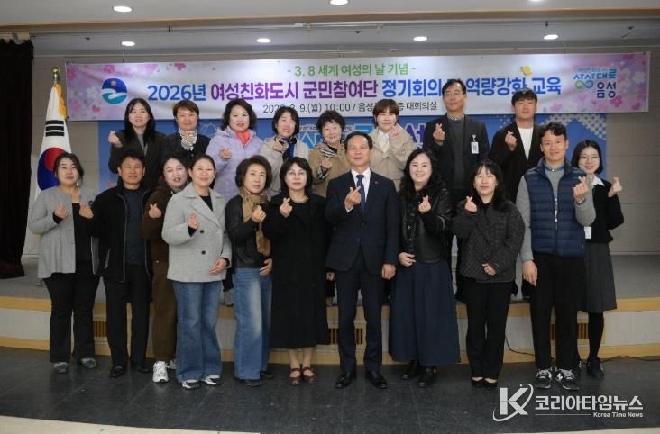 코리아타임뉴스 충북취재본부 | 음성군은 9일 군청 대회의실에서 3월 8일 ‘세계 여성의 날’을 기념해 여성친화도시 군민참여단 정기회의 및 역량 강화 교육을 개최했다고 밝혔다.