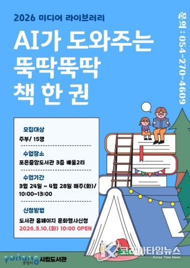 코리아타임뉴스 경북취재본부 | 포항시립포은중앙도서관은 오는 24일부터 4월 28일까지 매주 화요일, 포은중앙도서관 배움2터에서 ‘2026 상반기 별찌인문교실’과 ‘미디어라이브러리’ 수업을 운영한다.