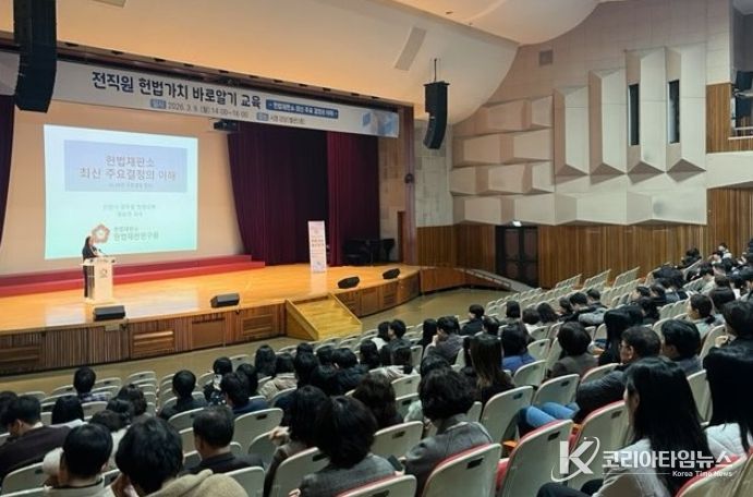 코리아타임뉴스 사회팀 | 안양시는 9일 오후 2시 소속 공무원들을 대상으로 예승연 헌법재판소 헌법재판연구원 교수를 초빙해 ‘헌법가치 바로 알기’ 교육을 실시했다.