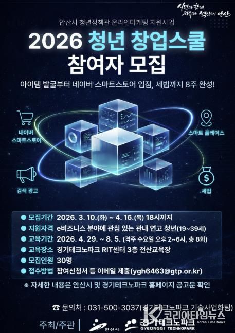 코리아타임뉴스 윤광희 기자 | 안산시는 e비즈니스 분야 청년 창업자의 안정적인 시장 진입과 사업 운영을 지원하기 위해 ‘청년 창업스쿨’ 참여자를 모집한다고 10일 밝혔다.