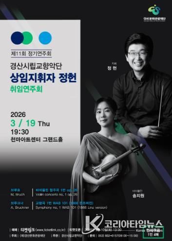 코리아타임뉴스 윤광희 기자 | 경산시립교향악단이 ‘제11회 정기연주회’를 오는 19일 영남대학교 천마아트센터 그랜드홀에서 개최한다.