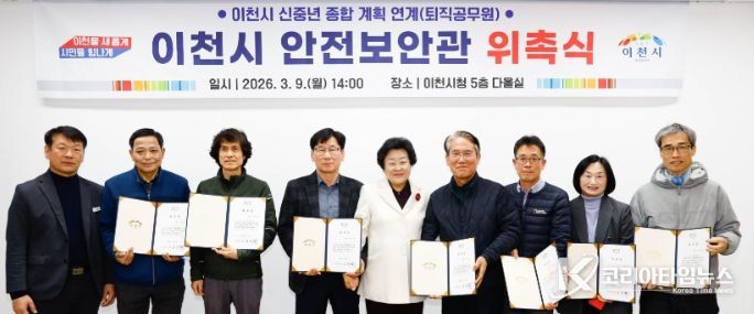 코리아타임뉴스 기동취재팀 | 이천시는 지난 9일 ‘이천시 안전보안관 위촉식’을 열고 신규 안전보안관 7명에게 위촉장을 수여했다.