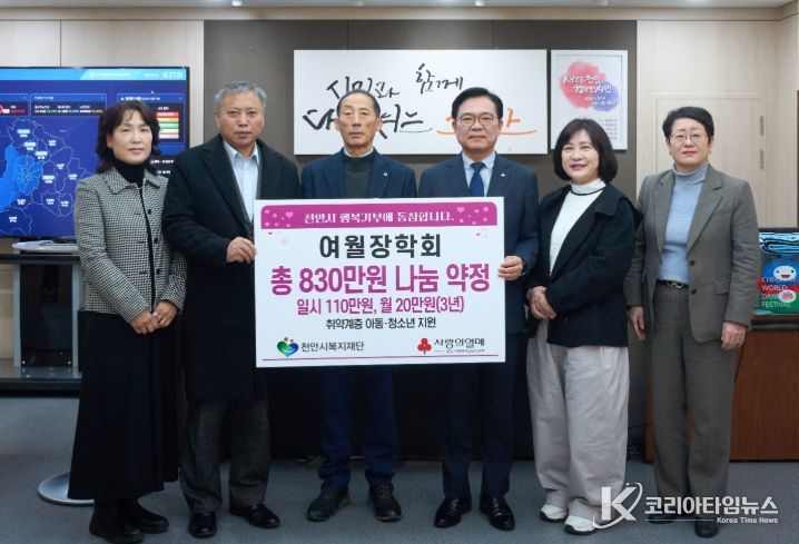 코리아타임뉴스 김택호 기자 | 천안시복지재단은 지난 10일 여월장학회가 저소득 아동·청소년을 위해 후원금 830만 원을 기탁했다고 밝혔다.