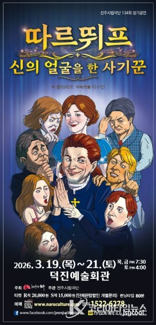 코리아타임뉴스 전북취재본부 | 전주시립극단(예술감독 겸 연출 이수인)은 오는 19일부터 21일까지 덕진예술회관에서 제134회 정기공연인 ‘따르뛰프’를 선보인다.