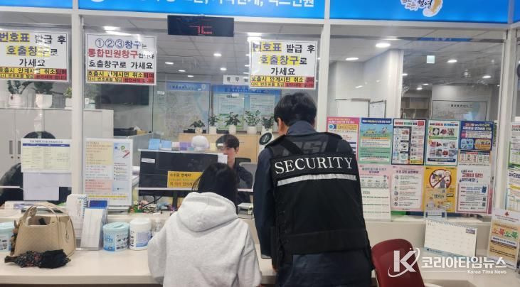 특히 안전요원은 단순 경비를 넘어, 거동이 불편한 어르신을 부축하거나 서류 작성을 돕는 등 ‘민원 도우미’ 역할까지 자처하고 있어 친절하고 안전한 민원실 분위기를 이끌어 내고 있다.