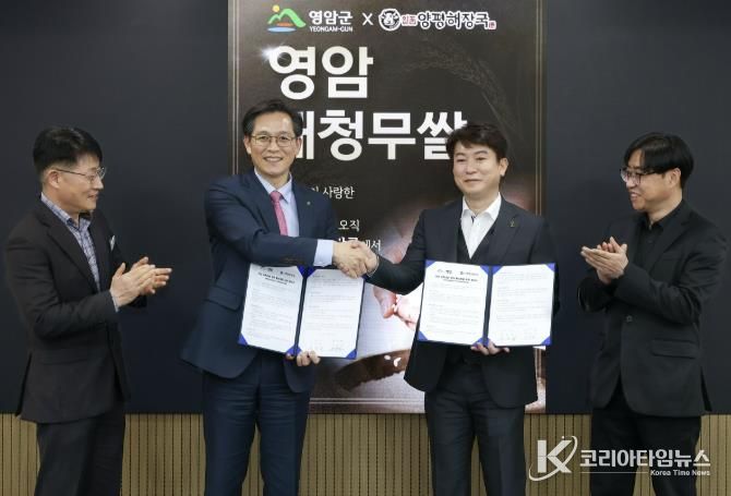 코리아타임뉴스 노승선 기자 | 영암군이 11일 군청에서 ‘일품양평해장국’ 외식 프랜차이즈 ㈜우분트월드와 영암 농특산물 판매 활성화 업무협약을 체결했다.