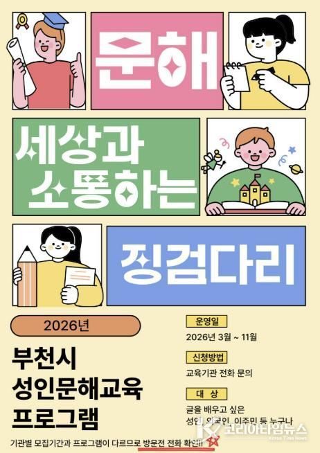 오미경 부천시 평생교육과장은 “성인문해교육을 통해 배움의 기회를 놓친 시민들이 다시 학습의 길로 나아갈 수 있도록 돕겠다”며 “누구나 소외됨 없이 배우고 성장할 수 있는 평생학습도시 부천을 만들어 가겠다”고 말했다.