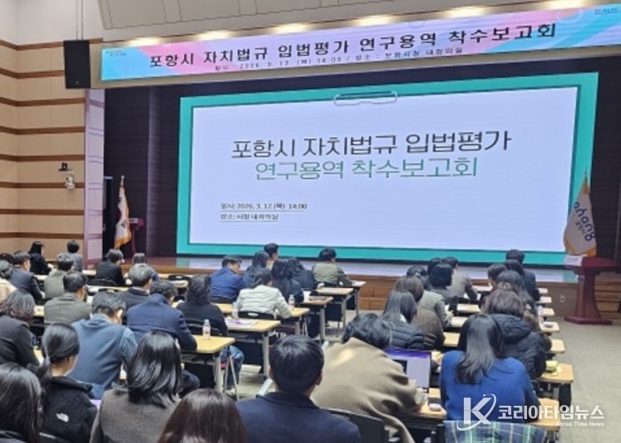 코리아타임뉴스 경북취재본부 | 포항시는 12일 시청 대회의실에서 자치법규 소관 부서장 및 팀장과 용역수행기관 관계자 등 100여 명이 참석한 가운데 ‘포항시 자치법규 입법평가 연구용역 착수보고회’를 개최했다.