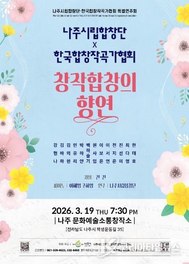 나주시는 오는 3월 19일 오후 7시 30분 문화예술소통창작소에서 나주시립합창단 특별연주회 ‘창작합창의 향연’을 개최한다고 12일 밝혔다.