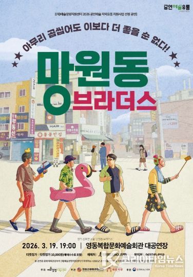 코리아타임뉴스 박찬식 기자 | (재)영동군문화관광재단은 2026년 공연예술 지역유통사업 선정작인 연극 ‘New 망원동 브라더스’를 오는 19일 오후 7시 영동복합문화예술회관에서 선보인다고 밝혔다.