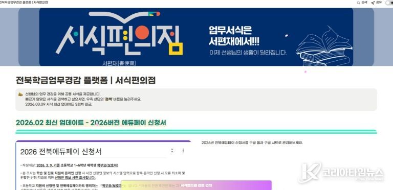 코리아타임뉴스 사회팀 | 전북특별자치도교육청이 교사 행정업무 경감을 위해 운영하는 ‘AI 서식편의점’의 기능 및 편리성을 한층 강화한다.