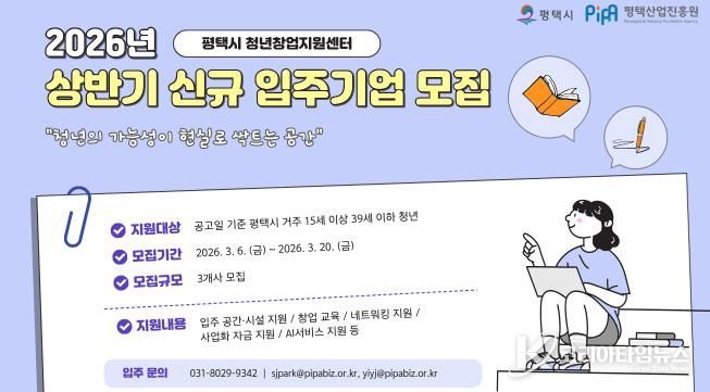 코리아타임뉴스 사회팀 | 평택시와 평택산업진흥원은 오는 20일까지 녪년 평택시 청년창업지원센터 신규 입주기업’을 공개 모집한다.