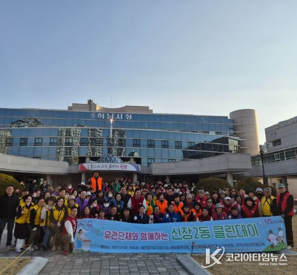 코리아타임뉴스 기동취재팀 | 하남시 신장2동 행정복지센터 8개 유관단체 회원 100여명은 지난 3월 13일 오전8시부터 약2시간 동안 클린데이 행사(청결활동)를 실시하여 신장2동 일원에서 환경정화 활동을 했다.